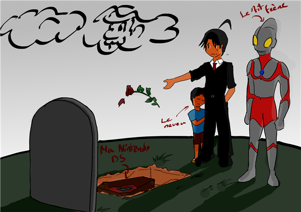 Au niveau de dessin, c’est un peu plus familial, j’ai représenté le plus geek par « Ultraman ». En fait il est pas très dessinable (je sais pas comment il doit le prendre) mais en plus il est vraiment geek, je parle pas de tous les « geek-2.0-du-dimanche » qui s’octroient le titre depuis qu’ils ont un Iphone. Non là, ça suit du drama coréen, les statistiques des publications mangas, te ressort des trucs qui ne sont même pas de sa génération, tous en roulant sur sa prépa comme s’il était encore au collège.