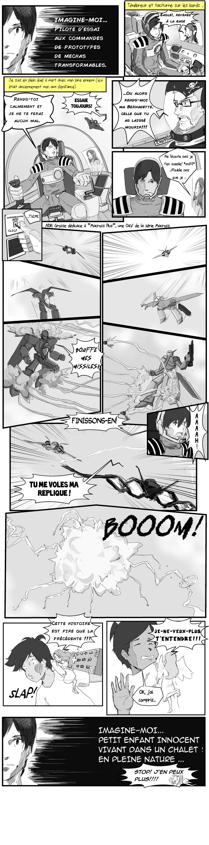 Vous avez sûrement du noter la présence d’un nouveau personnage, du nom d’Annabelle, elle sera la caution féminine du blog et cette personne (qui existe vraiment) est une grande source d’inspiration. Quand à Benji (le méchant pilote) je le remercie de me laisser emprunter son visage dès que j’ai besoin d’un second rôle pour mes notes.